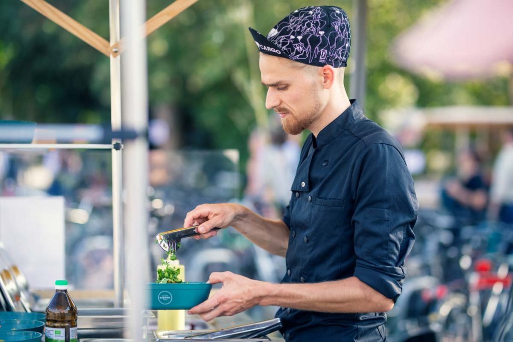 Velo Vegan aus Freiburg bietet veganes Catering, transportiert auf einem eigens zu diesem Zweck ausgebauten Lastenfahrrad. Unter dem Motto „Handgemacht. Nachhaltig. Lecker.“ war das Team von Velo Vegan auch beim diesjährigen Agrikultur-Festival im Freiburger Eschholzpark vertreten. Das haben wir in Szene gesetzt. Die vegane „Klima-Bowl“ schmeckt übrigens hervorragend!