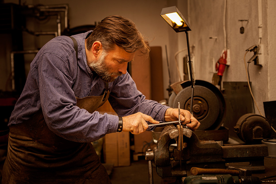 heute folgt Teil 2 der Fotostrecke aus der Schwarzwald Schmiede über den Entstehungsprozess eines handgeschmiedeten Messers. Im ersten Teil konnte man sehen, wie aus einem Stahlblock der Rohling entsteht, bei dem man die Form des Messers zumindest schon erahnen konnte. Mit den heutigen Bildern zeige ich, wieviel Feinarbeit notwendig ist, um das Messer weiter zu veredeln. Es wurde geschliffen, geschmirgelt und geätzt…