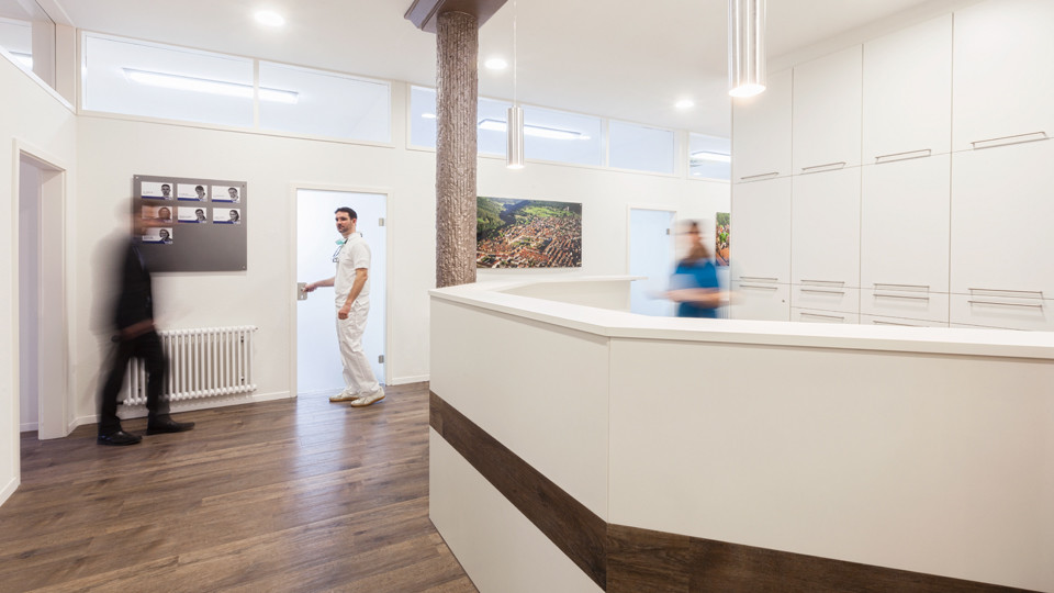 Heute dürfen wir aktuelle Interior-Fotos zeigen, die wir kürzlich in der sehr modernen und geschmackvoll renovierten Zahnarztpraxis Dr. Ilg in Staufen produziert haben.