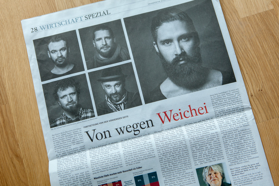 in der aktuellen Ausgabe der Frankfurter Allgemeinen Sonntagszeitung erschien heute in der Rubrik „Wirtschaft Spezial“ ein Teil meiner Bart-Serie. Der Artikel „Von wegen Weichei – Die neuen Super-Männer“ wurde mit 14 Bildern illustriert. Darüber freue ich mich sehr!