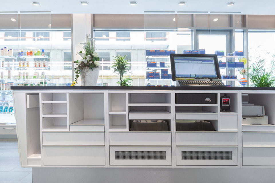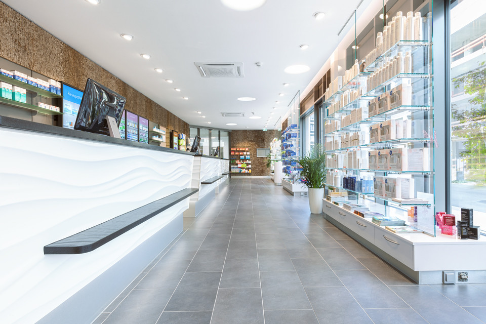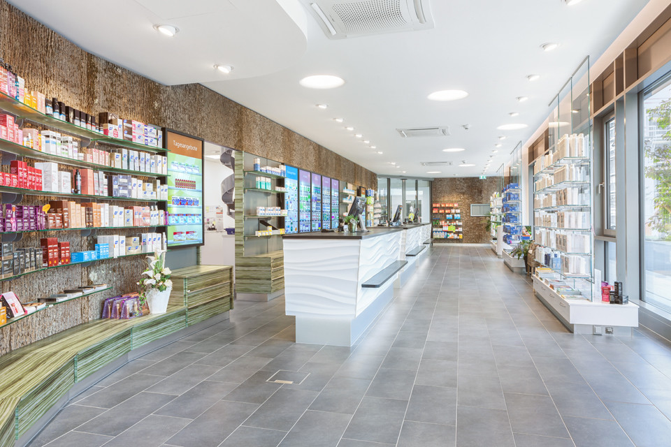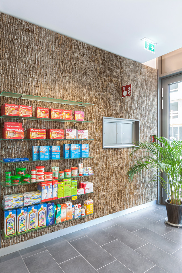 Für den Interieur-Designer Andreas Stoellger aus Köln wurden Aufnahmen der neu eingerichteten Apotheke Caunes im Burda-Park Offenburg produziert. Neben anderen hochwertigen Materialien im Innenausbau wurde bei der Gestaltung der Wände Pappelrinde aus Kanada verwendet. Das sieht man nicht alle Tage und hat eine sehr elegante und moderne Wirkung.