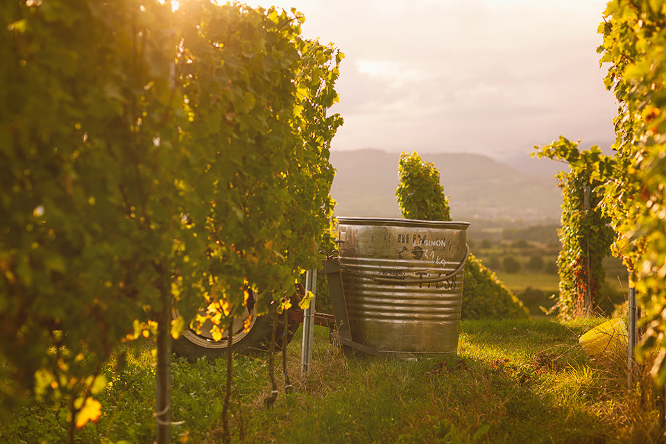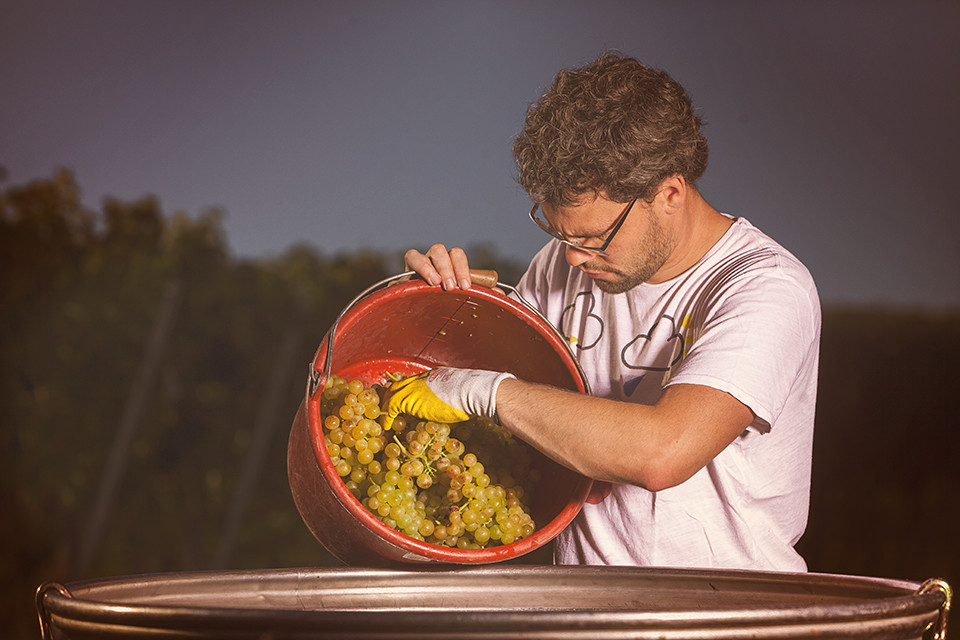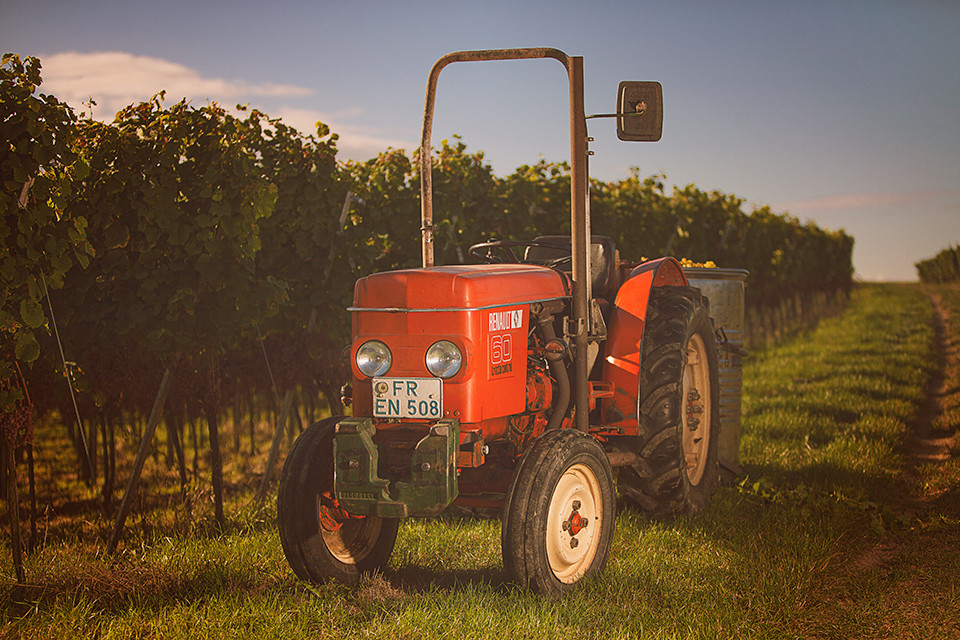 In meiner direkten Nachbarschaft befindet sich der Weinproduzent Josef Simon. Ihn begleite ich für einige ausgewählte Etappen auf dem Weg von der Traube zum Wein…