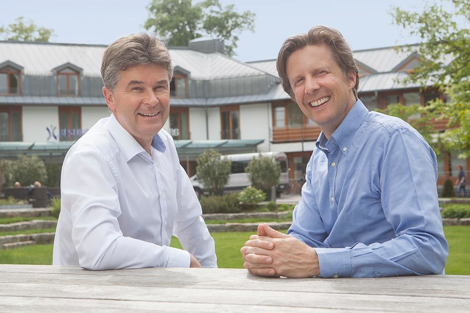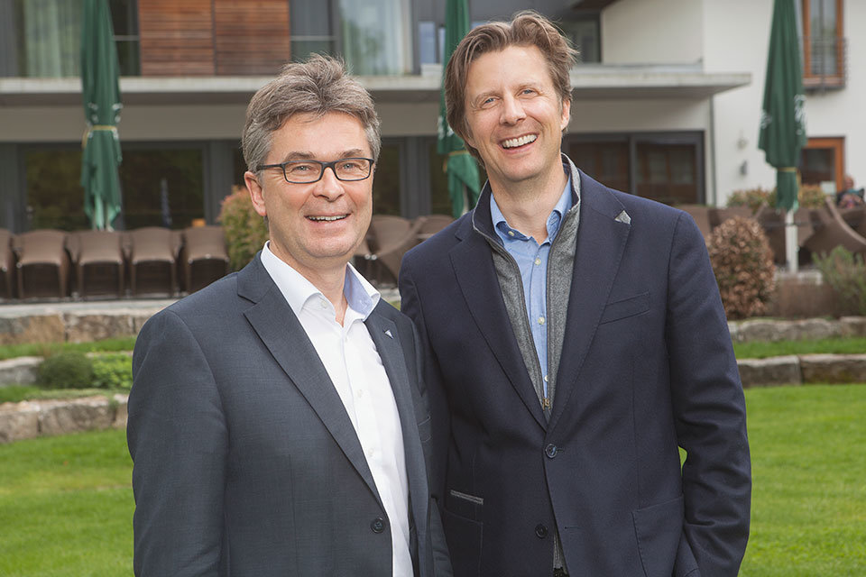 Nichts leichter als das, wenn man es mit zwei Herren zu tun hat, für die es nichts Ungewöhnliches ist, vor der Kamera zu stehen. Produziert wurden die Fotos im Außenbereich des Hotels Dorint An den Thermen Freiburg.