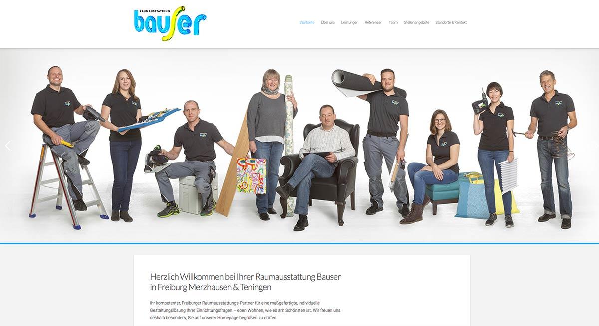 Für das Freiburger Unternehmen Raumausstattung Bauser mit Standorten in Merzhausen und Teningen wurden aktuelle Team-Fotos für die Website produziert. Die neue Internet-Präsenz ging kürzlich online und das Gesamtpaket kann sich sehen lassen.