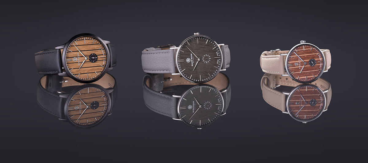 Holz aus Deutschland, italienisches Leder, Schweizer Präzisionsuhrwerke und last but not least edles Design aus dem Schwarzwald – aus all diesen Zutaten entstehen Uhren der Marke BLACK WOOD WATCHES. Für das Startup des Jungdesigners Jan Heege wurden drei Modelle der aktuellen Kollektion in Szene gesetzt.
