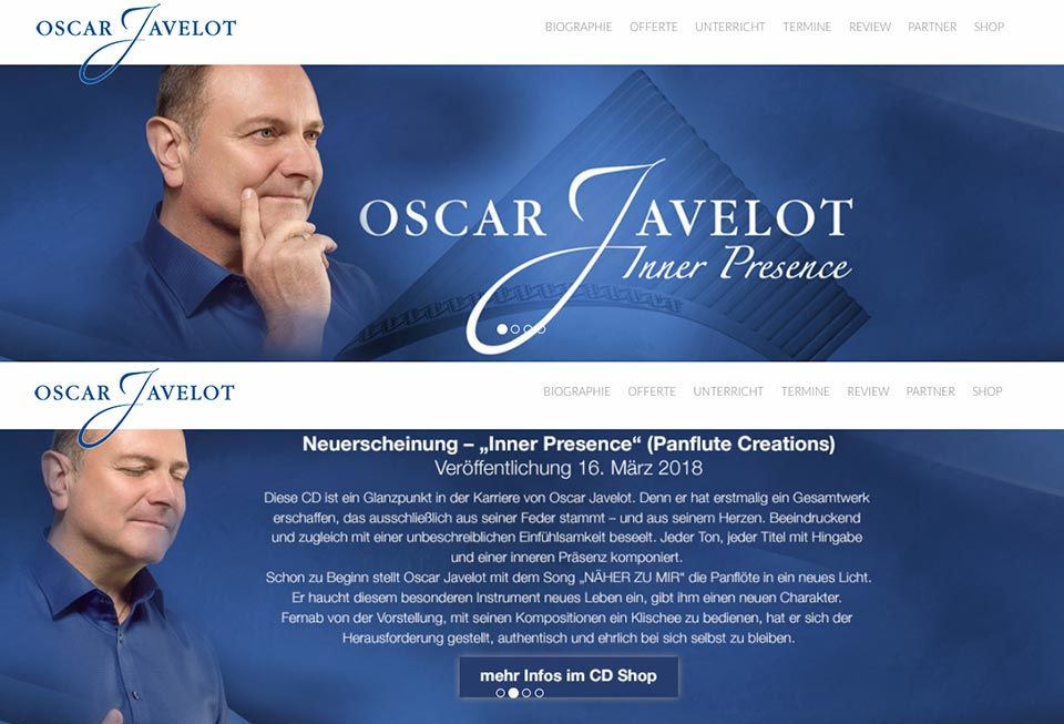Nicht nur die CD, auch die Website ist mit den Künstlerporträts illustriert. Für die grafische Gestaltung wurde darüber hinaus eine Panflöte fotografiert und freigestellt.