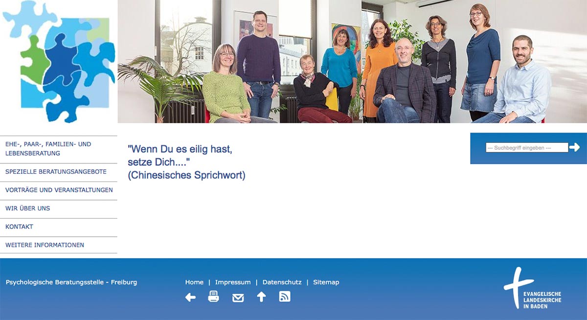 Für die Psychologische Beratungsstelle der Evangelischen Landeskirche in Baden mit Sitz in Freiburg fotografierten wir das Team, bestehend aus qualifizierten Beratern und Beraterinnen aus unterschiedlichen Grundberufen. Die Einrichtung bietet Beratung für Einzelpersonen, Paare und Familien in Konfliktsituationen und Lebenskrisen.