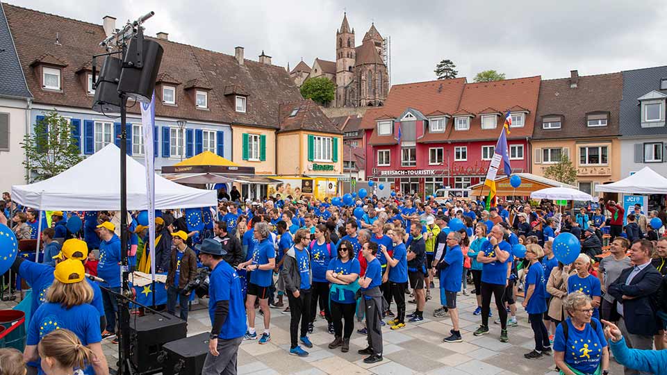 Laufend ein Zeichen für ein gemeinsames und vereintes Europa zu setzen – das war das Ziel von Run for Europe, einer grenzüberschreitenden Veranstaltung, die am vergangenen Sonntag in Breisach stattfand. Als offizieller Partner durften wir den sieben Kilometer langen Lauf und das anschließende Europafest auf dem Breisacher Marktplatz fotografisch begleiten. Menschen aus zahlreichen Ländern standen an diesem Tag dafür ein, dass Europa demokratisch, friedlich und lebenswert für alle bleibt – ein klares und deutliches Signal gegen Nationalismus und Rechtspopulismus. Daran beteiligen wir uns gern!