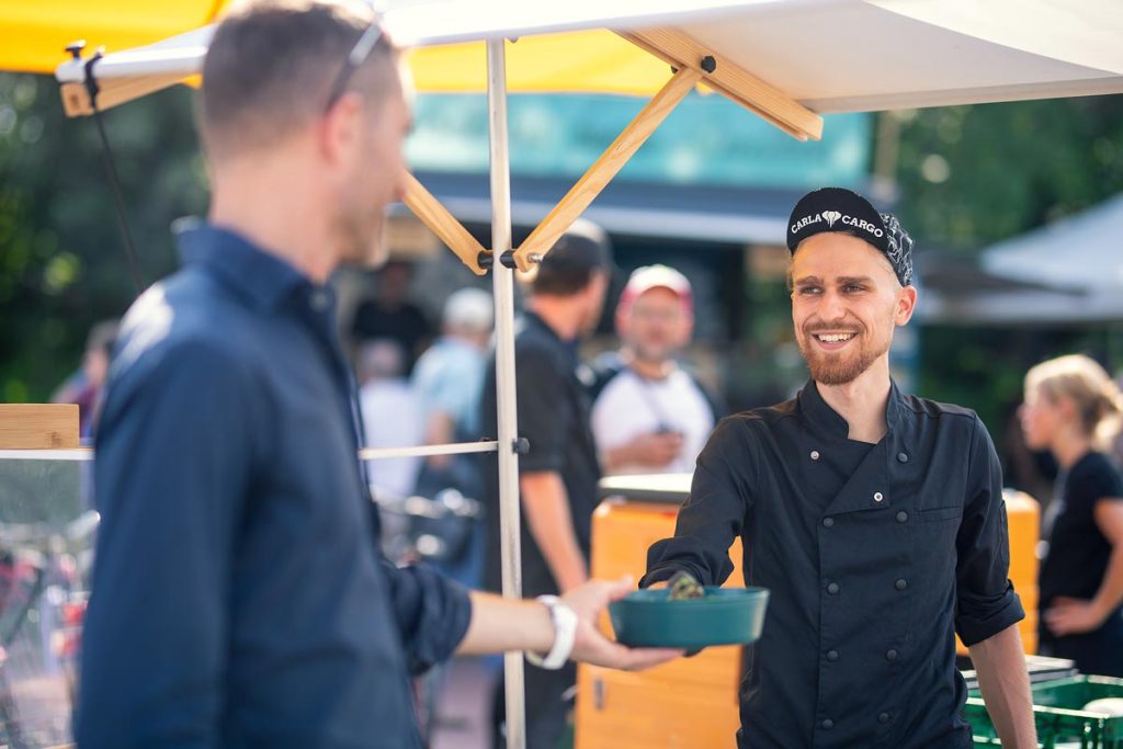 Velo Vegan aus Freiburg bietet veganes Catering, transportiert auf einem eigens zu diesem Zweck ausgebauten Lastenfahrrad. Unter dem Motto „Handgemacht. Nachhaltig. Lecker.“ war das Team von Velo Vegan auch beim diesjährigen Agrikultur-Festival im Freiburger Eschholzpark vertreten. Das haben wir in Szene gesetzt. Die vegane „Klima-Bowl“ schmeckt übrigens hervorragend!